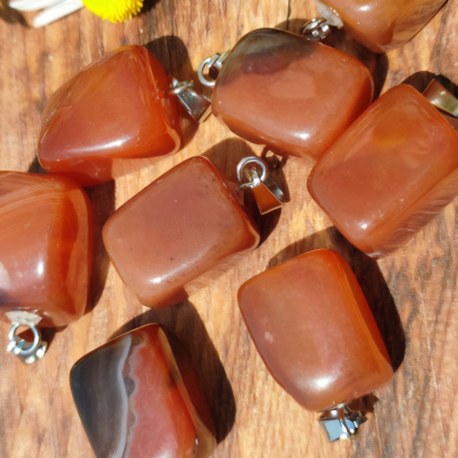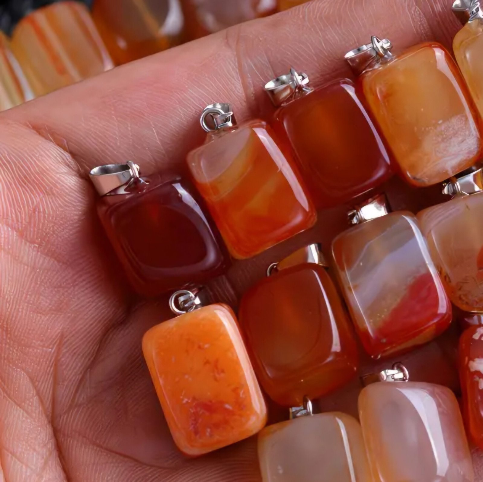 Expertly polished to a smooth, glossy finish, each pendant highlights the natural richness and unique patterns of Red Agate, ensuring that every piece is one-of-a-kind. Its vibrant red color adds a bold, eye-catching touch to any outfit, while its natural energy promotes strength and balance for the wearer.