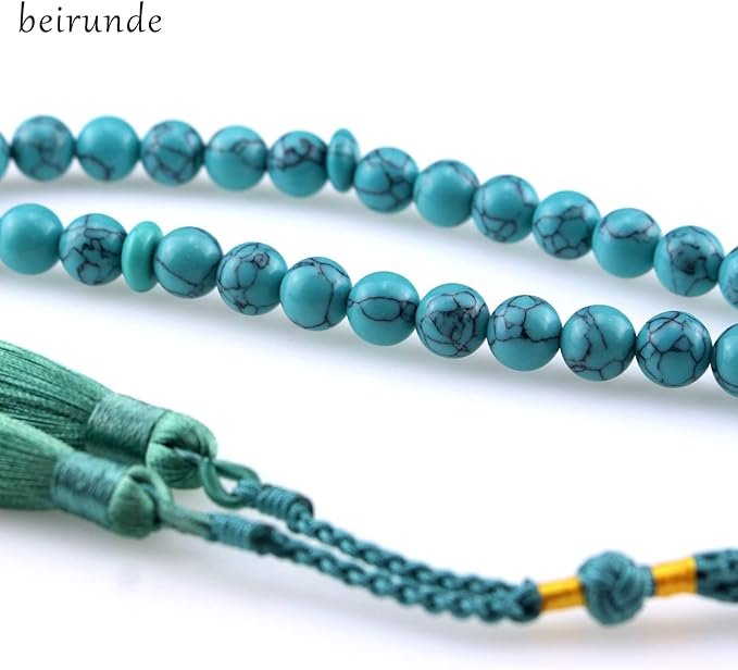 Handcrafted 33-bead turquoise tasbih with tassel. Perfect for dhikr, meditation, and daily Islamic prayer, ideal for Ramadan gifting.