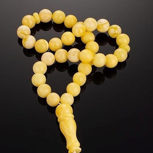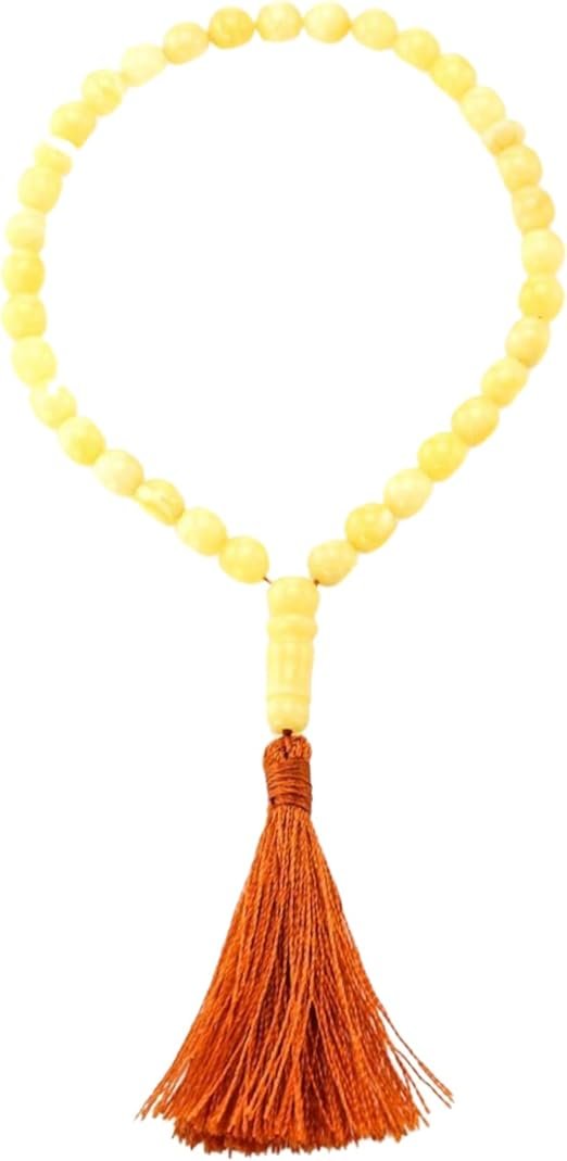 AUTHENTIC MATERIAL: Crafted from unique natural amber beads in an elegant round shape design, offering a traditional prayer experience. Perfect for Ramadan, Eid, Personal Milestone BEAD COUNT: Features 33 meticulously arranged beads, perfect for Islamic prayer practices and spiritual meditation TASSEL DETAIL: Adorned with a luxurious red tassel that adds both beauty and functionality to the prayer beads DESIGN: Round-shaped amber beads strung together in a traditional prayer bead pattern, creating a harmonious flow during use SIZE AND STYLE: Each bead measures approximately 7 mm, creating a comfortable grip for extended prayer sessions