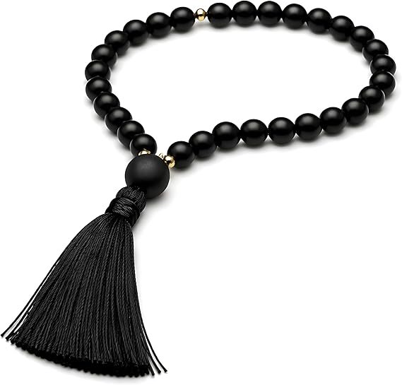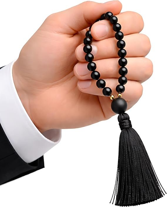 0Natural Black Jade 33-Bead Tasbih with smooth 10mm stones for daily zikr, dhikr, and Islamic prayer. Handcrafted and comes with a gift pouch—perfect for personal worship or gifting.