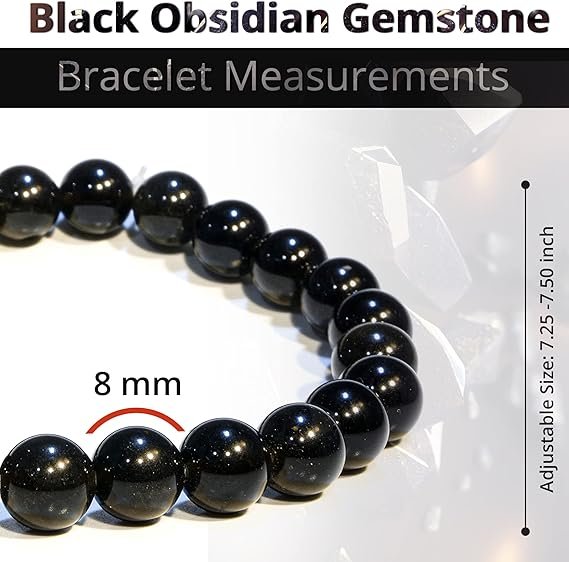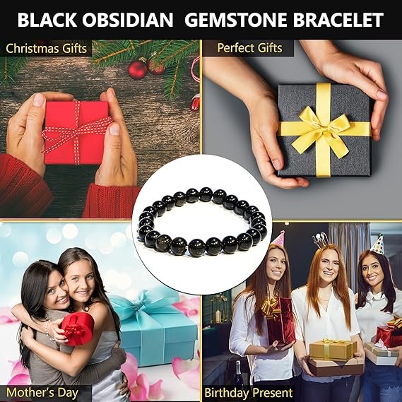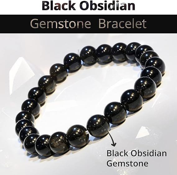 Natural black obsidian 8mm beaded bracelet. Stretchable, stylish, and perfect for daily wear and gifting.