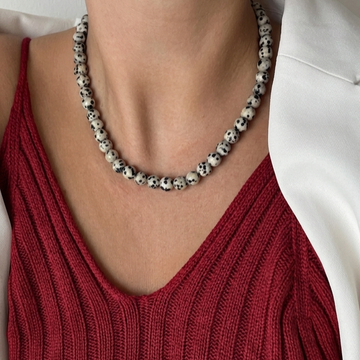 Crafted with care, this piece is lightweight, durable, and designed to sit comfortably, letting you enjoy both style and ease. Balmatine is celebrated for its positive energy, believed to inspire balance, confidence, and inner peace—making this necklace more than just jewelry; it’s a statement of calm sophistication.