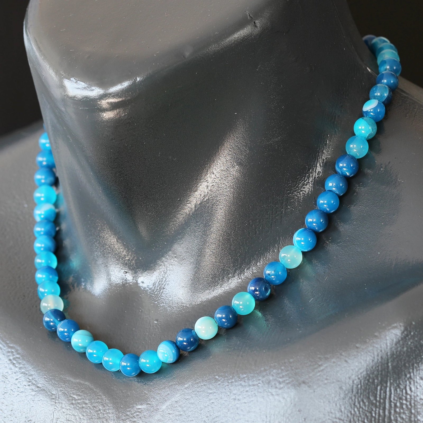 Expertly crafted for everyday wear, the necklace is lightweight, durable, and comfortable. Its versatile design complements casual, formal, and special occasion outfits, making it a timeless addition to any jewelry collection. Whether gifting it to a loved one or adding it to your own collection, the Blue Striped Necklace combines style, serenity, and elegance in one exquisite piece.