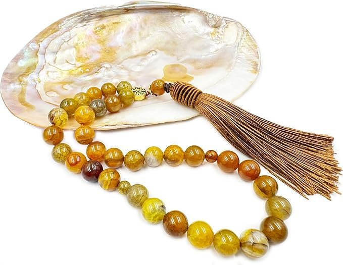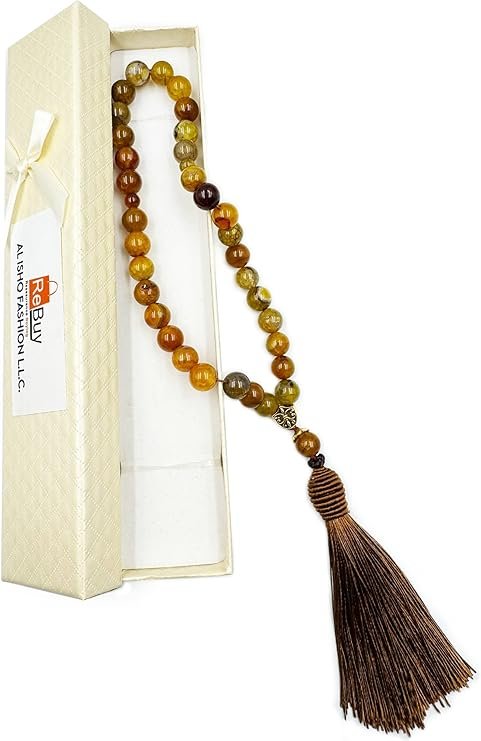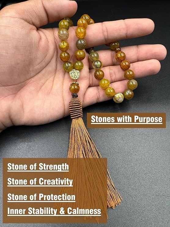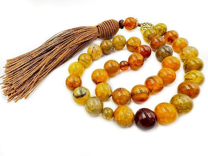 Natural Dragon Vein stone tasbih with 10mm beads and tassel. Perfect for dhikr, meditation, grounding, and positive energy, ideal for Eid or wedding gifts.