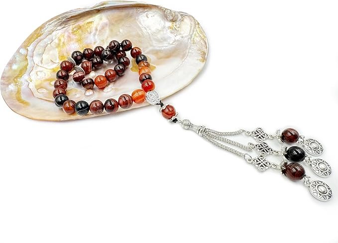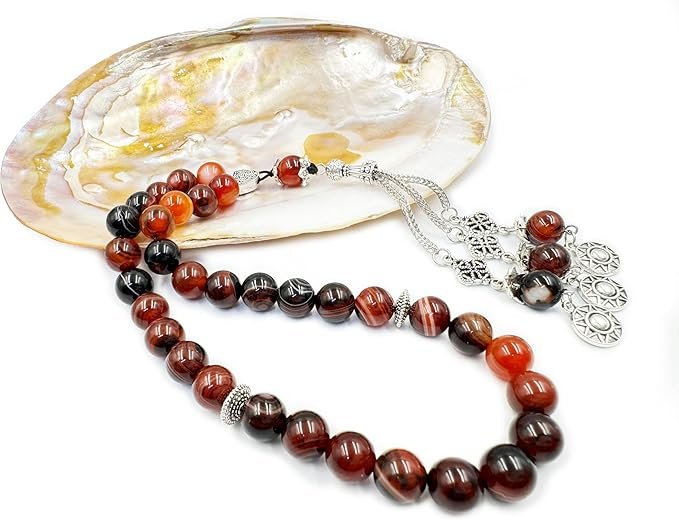 Premium Handcrafted Tasbih with Natural Agate Beads – Turkish-Style Islamic Prayer Beads for Dhikr & Meditation