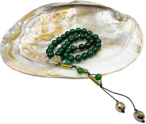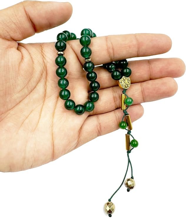 This elegant handcrafted tasbih is created to elevate your spiritual moments, offering a serene and grounding experience with every bead you touch. Made from natural Green Jade gemstones, it embodies tranquility, protection, and inner harmony—helping you stay focused during prayer, Quran recitation, or personal reflection. Its smooth beads glide effortlessly through the fingers, creating a calming flow that enhances mindfulness and deepens the sincerity of Zikr. The tasbih’s refined craftsmanship and soothing energy make it a cherished accessory for anyone seeking spiritual balance, emotional peace, and a stronger connection with their faith. Whether used during quiet reflection or kept close as a reminder of devotion, it beautifully complements your daily ibadah and enriches your spiritual journey.