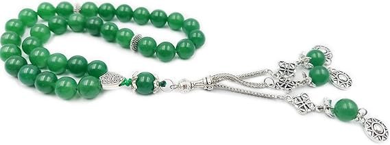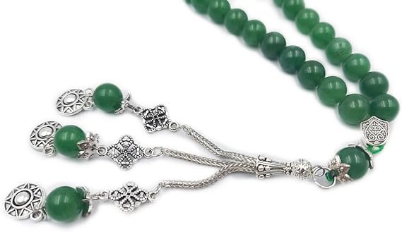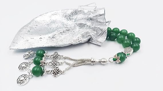 The REBUY Green Jade Tasbih with Silver Tassel 33 Beads is a sacred blend of spiritual tradition premium craftsmanship and crystal healing energy. Made from authentic natural green jade gemstones this misbaha tasbih is believed to attract good luck prosperity success and emotional balance. The powerful healing vibrations of jade help calm the mind reduce negativity and enhance inner peace. Featuring large 10mm smooth polished beads and an elegant silver tassel this tasbih offers a comfortable strong grip for uninterrupted zikr dua namaz and meditation. Designed for both men and women it is perfect for daily religious use spiritual practices and meaningful gifting. A timeless spiritual companion bringing positivity faith and divine energy into your life. PRODUCT HIGHLIGHTS:- Natural green jade healing gemstone Traditional 33 beads Islamic tasbih Premium silver tassel finishing Powerful good luck and prosperity stone Suitable for men and women Large comfortable 10mm beads Ideal for prayer zikr and namaz Emotional healing and stress relief Elegant spiritual gifting item Durable strong thread construction PRODUCT FEATURES:- Genuine green jade crystal stones Sacred 33 bead prayer desig Smooth polished 10mm bead size Premium metallic silver tassel Strong durable thread stringing Comfortable prayer movement flow Suitable for daily religious practice Enhances positivity and stability Traditional and modern spiritual appeal Long lasting premium finish