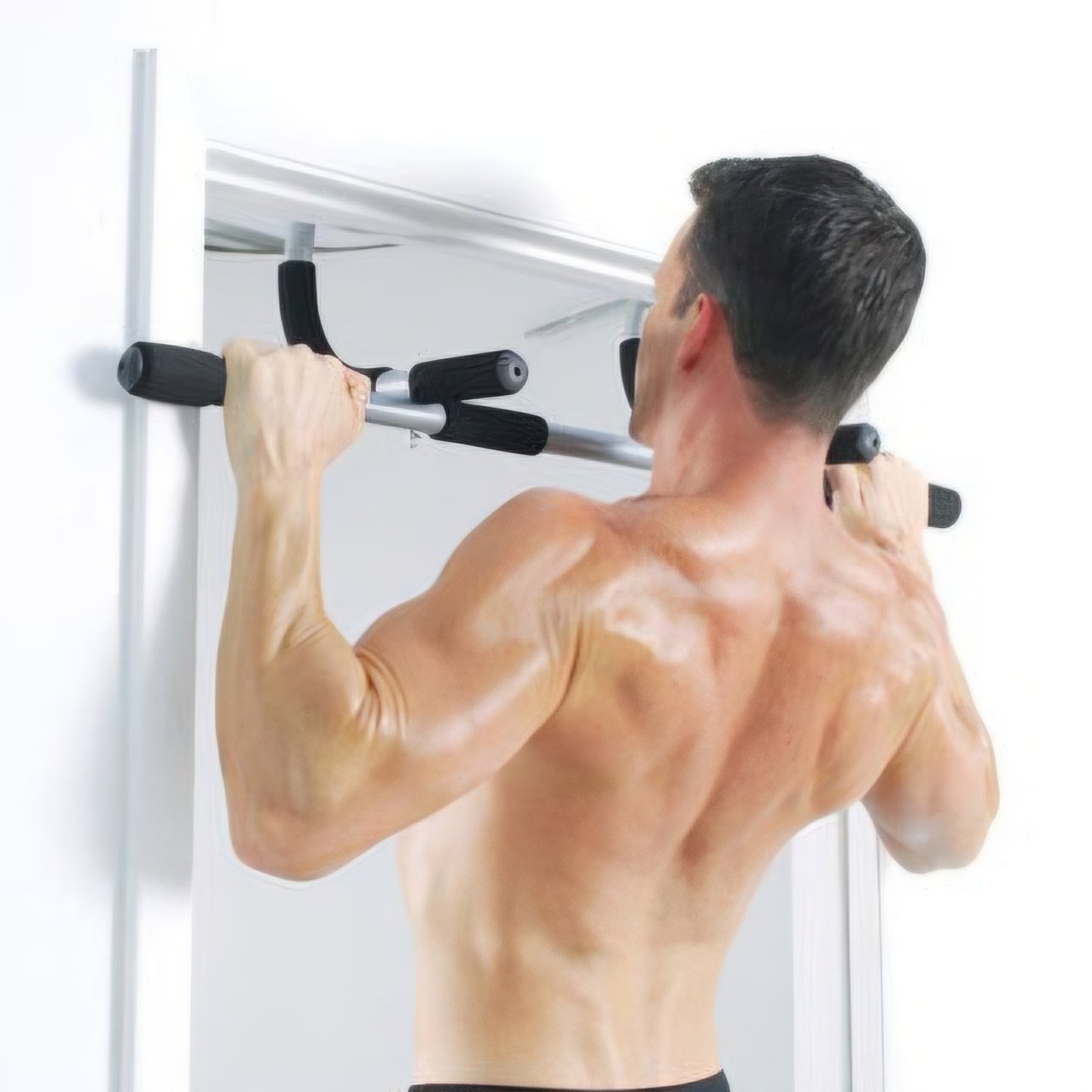 The Pull-Up Bar tones arms, chest, shoulders, and back. Sturdy, non-slip, and easy to install for home or doorway workouts.