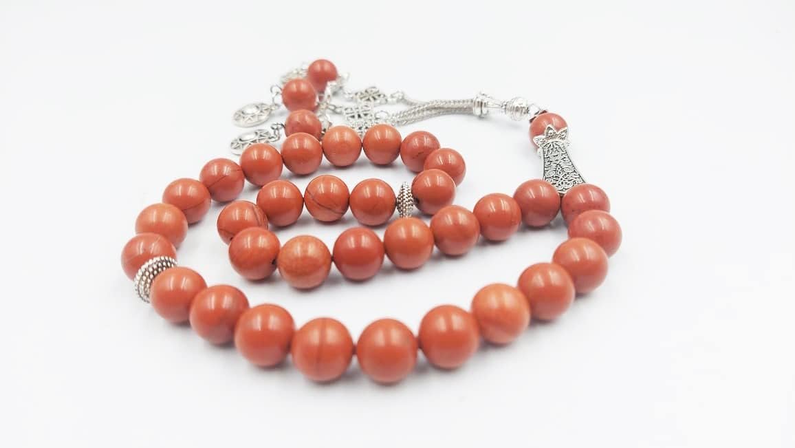 Sale! Red Jasper Tasbihد.إ 85.00 Original price was: د.إ 85.00.د.إ 67.00Current price is: د.إ 67.00. Natural red jasper prayer beads tasbih, handcrafted for dhikr, meditation, and daily spiritual use. Elegant and suitable for men and women. Red Jasper Tasbih quantity Add to cart Category: Tasbih Description Reviews (0) Description Product information Technical Details Finish types Matte Care instructions Hand wash gently. Avoid exposure to harsh chemicals and extreme temperatures. Number of pieces 33 Batteries required No Product description Hand made High quality unique beautiful Turkish design prayer beads, rosar Reviews There are no reviews yet. Be the first to review “Red Jasper Tasbih” Cancel replyYour email address will not be published. Required fields are marked *Your rating * Rate… Perfect Good Average Not that bad Very poor Your review *Name * Email * Save my name, email, and website in this browser for the next time I comment. Related products Sale! Premium Date Seeds Tasbeeh د.إ 99.00 Original price was: د.إ 99.00.د.إ 85.00Current price is: د.إ 85.00. Add to cart Sale! Yellow Dragon Vein Tasbih د.إ 100.00 Original price was: د.إ 100.00.د.إ 99.00Current price is: د.إ 99.00. Add to cart Sale! Lapis Lazuli 33 Beads Tasbih د.إ 150.00 Original price was: د.إ 150.00.د.إ 135.00Current price is: د.إ 135.00. Add to cart Sale! Natural Aqeeq 33 Beads Tasbih د.إ 120.00 Original price was: د.إ 120.00.د.إ 85.00Current price is: د.إ 85.00. Add to cart