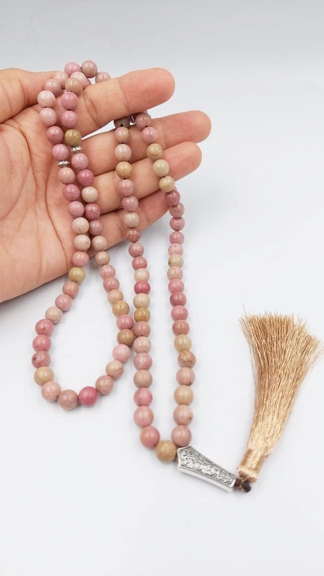 Prayer Beads Tasbih Natural Rhodocrosite Stone Misbaha Rosary Tasbeeh Counter 99 Beads Womens Tasbih Prayer Beads Rhodocrosite stone tasbih By REBUY