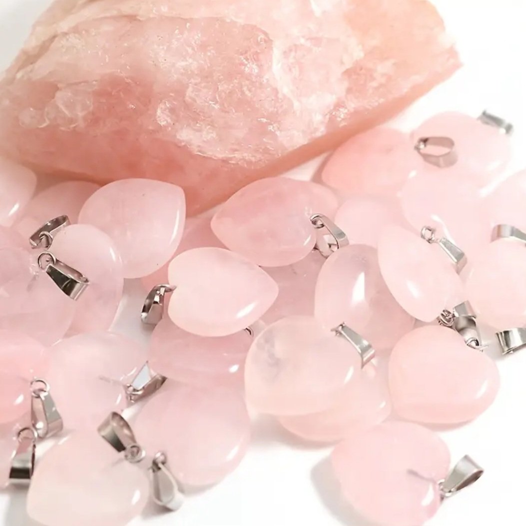 Delicate pink rose quartz pendant on a sleek chain, adding love, elegance, and positive energy to any outfit.