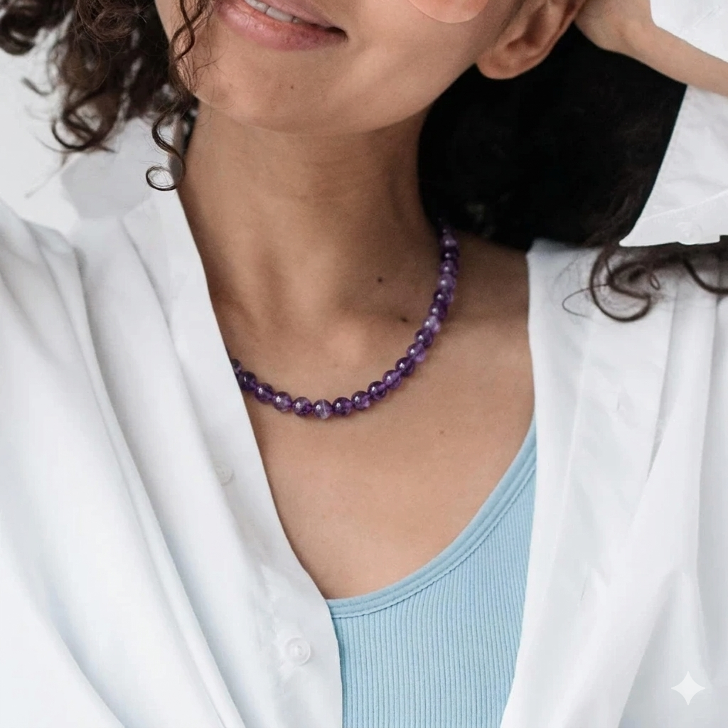 A stunning amethyst necklace with rich purple tones, symbolizing calm, clarity, and elegance. Perfect for everyday wear or special occasions, lightweight, stylish, and ideal for gifting. 💜